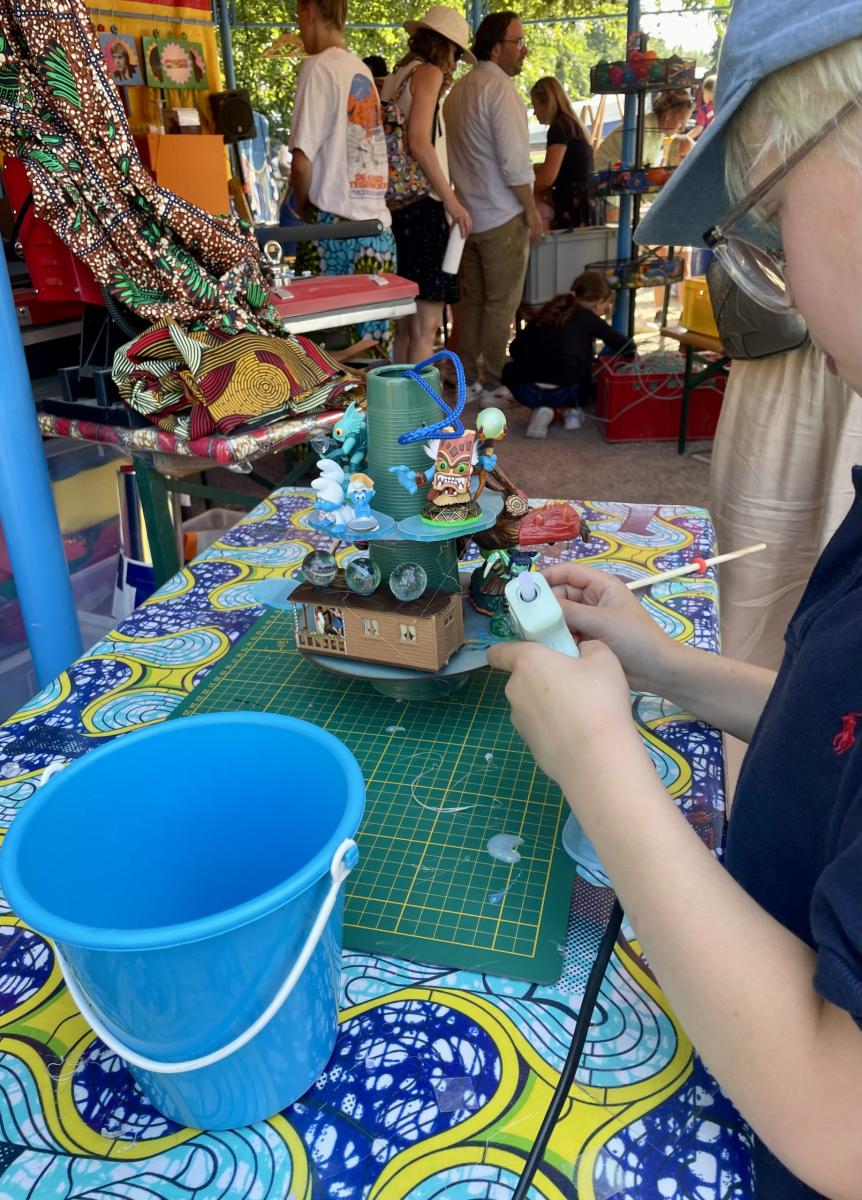 Kunst maken van E-waste, een interactieve installatie die inspireert, activeert en bewust maakt. Ontdekt de kracht van afgedankte elektronica in een creatieve en interactieve totaalbeleving. Deze installatie/workshop zet de bezoekers letterlijk in beweging. De installatie combineert kunst, technologie en duurzaamheid en nodigt de bezoekers uit om zelf onderdeel te worden van een creatief proces. Een foto maken van je werk? Dat kan natuurlijk met je eigen telefoon. Liever een tastbare herinnering, druk op de knop en neem een tastbare herinnering mee naar huis.
